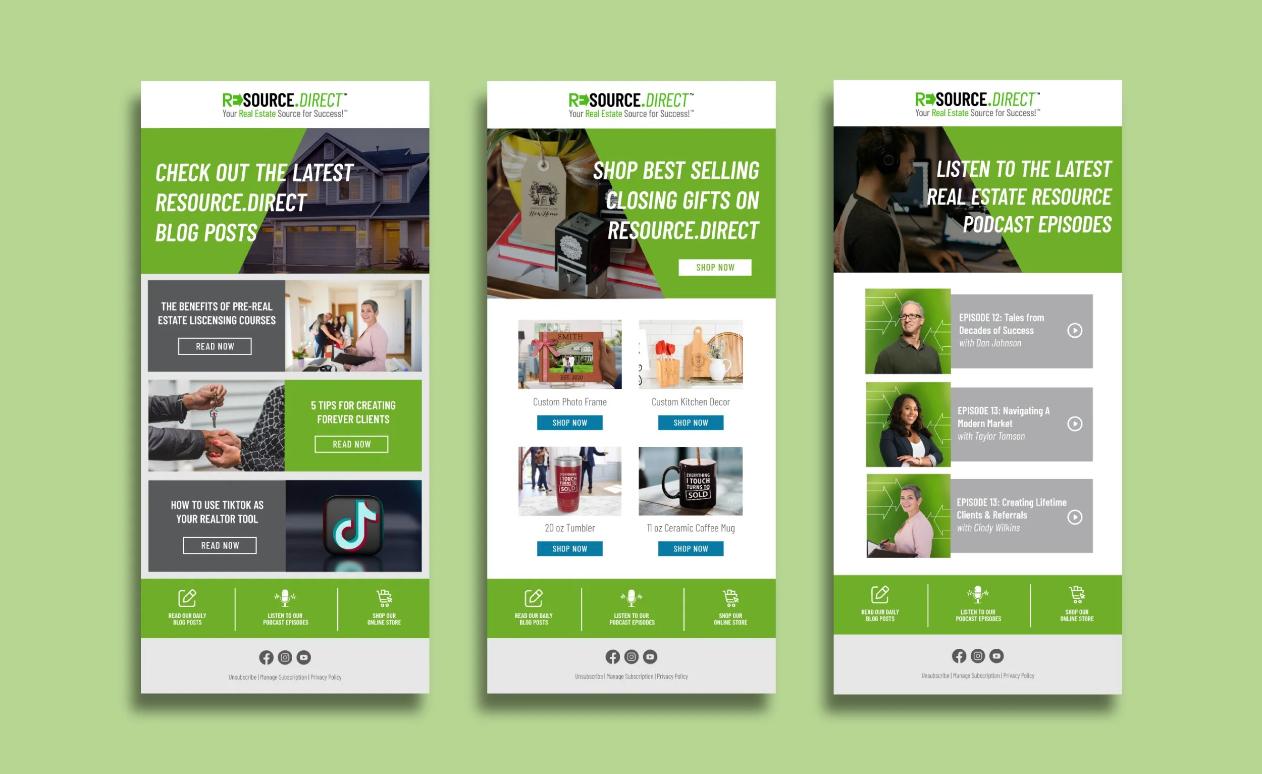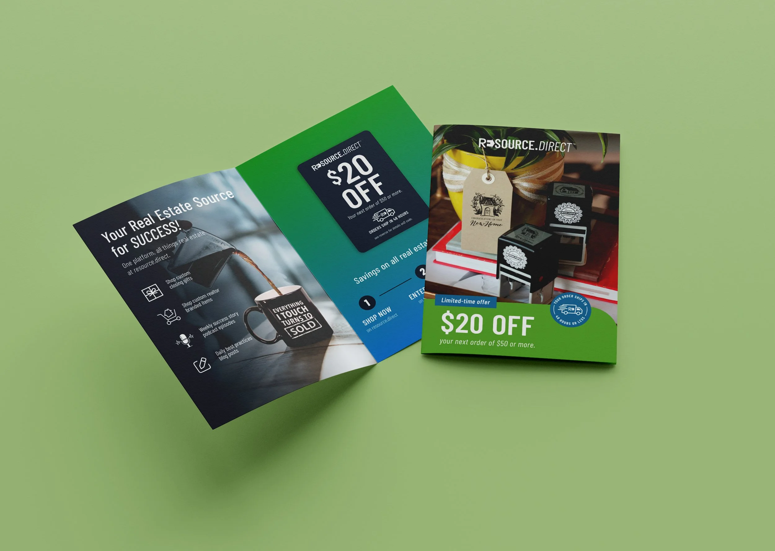 Resource.Direct is an real estate brand offering resources such as an ecommerce shop for closing gifts and realtor branded items, a podcast, a real estate blog and more.